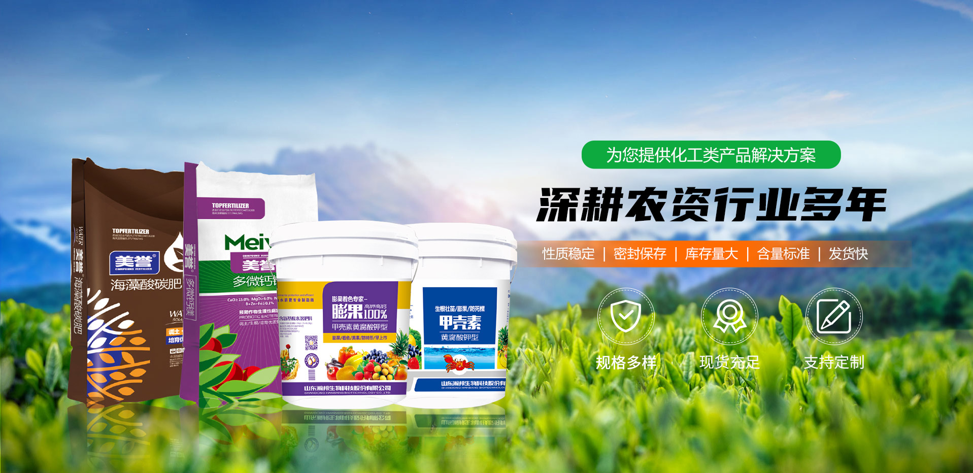 公司自成立以來,建成了自動化大型水溶肥生產線和大型的實驗室及實驗設備,研究團隊和配方工藝保障了產品一直處于品質前端,陸續推出了多種大量元素水溶肥、大量元素清液、中量元素水溶肥黃腐酸鉀型腐殖酸水溶肥、氨基酸型水溶肥、微生物菌肥、微生物有機肥等多種產品,享有較髙的聲譽。
